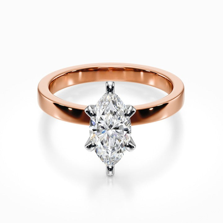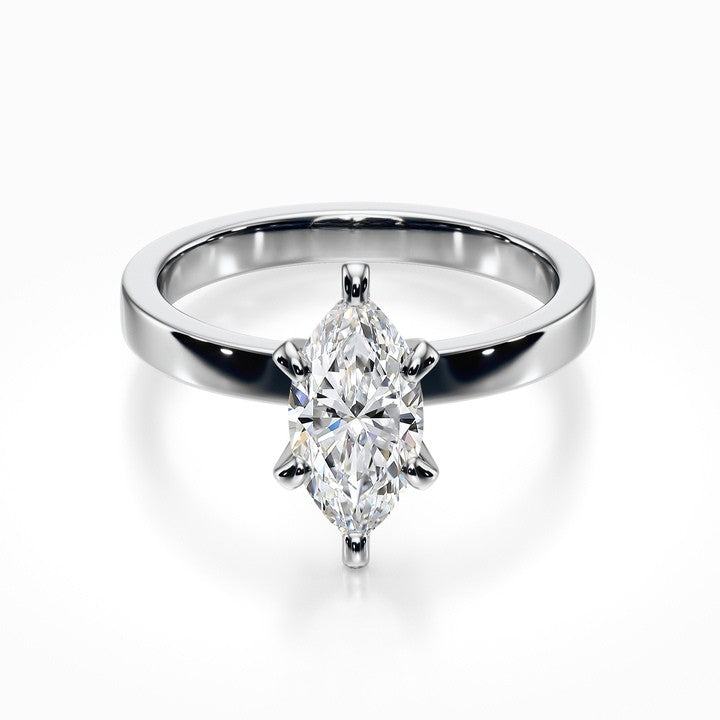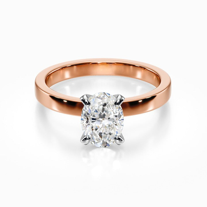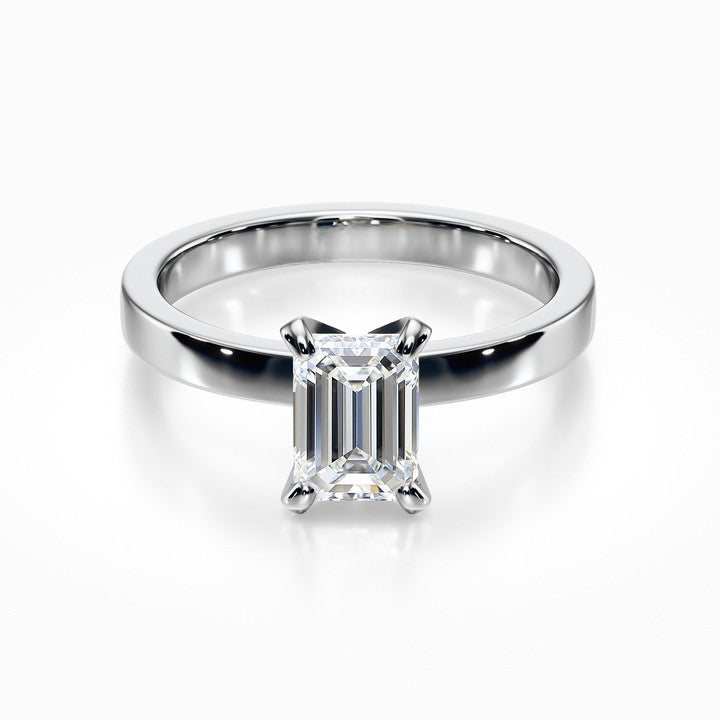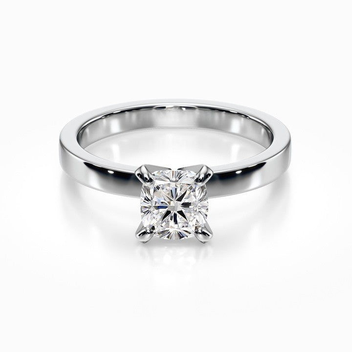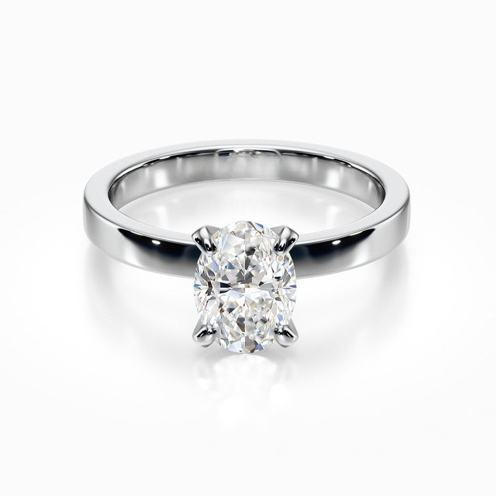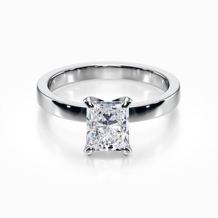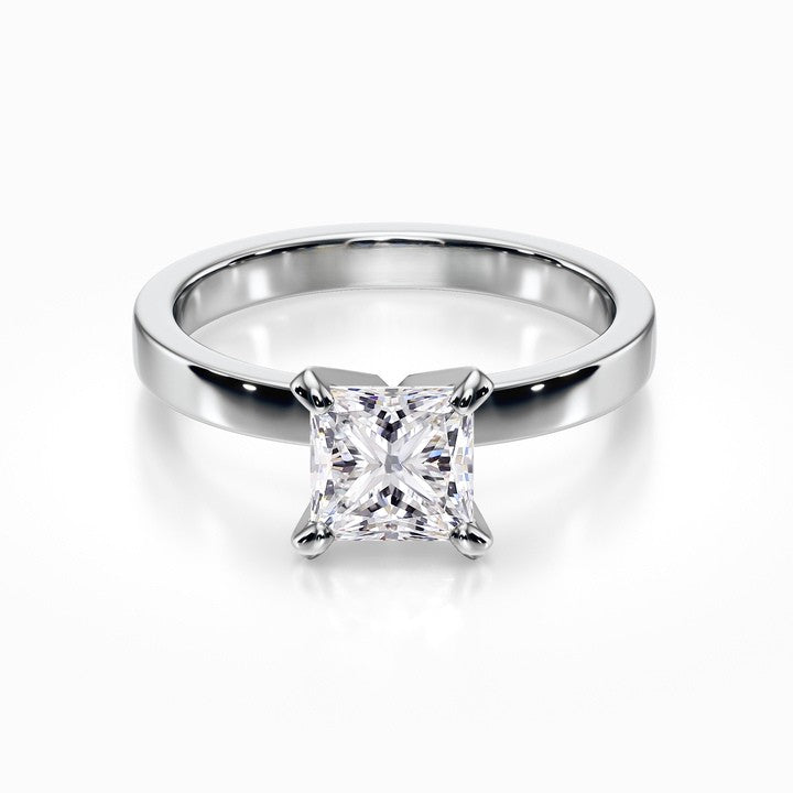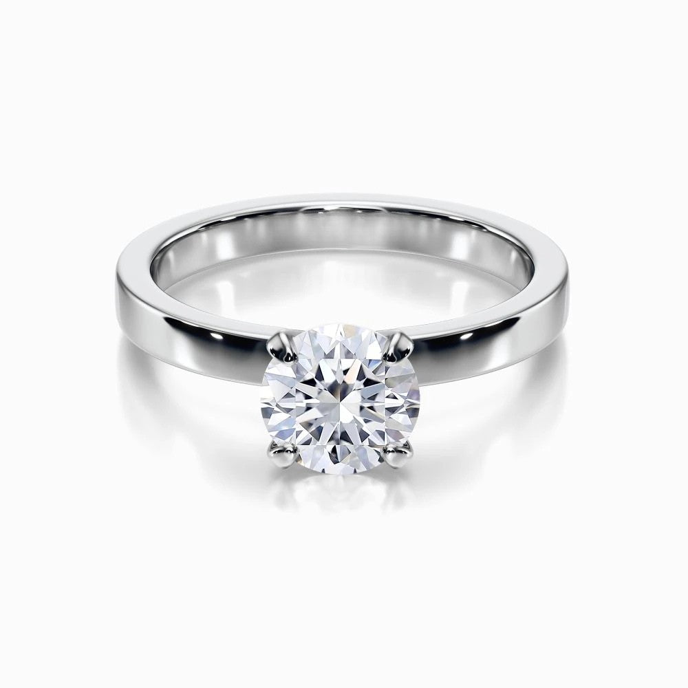 Meet the Classic 4-Prong Flat Solitaire, a minimalist silhouette with a crisp, flat-profile band and clean edges that spotlight the center diamond. A refined four-prong head and open gallery invite light from every angle to enhance fire and scintillation, while the tapered, comfort-fit shank keeps the profile easy for everyday wear. Choose lab-grown (D/VS1) in 1.0ct or 1.5ct, or natural (F/VS1) diamond for a timeless center. Available in 18K White Gold, 18K Yellow Gold, or 18K Rose Gold to suit your style. Center Diamond is graded by GIA or IGI and delivered with its official report for proof of quality, authenticity, and exact specs.