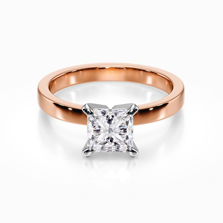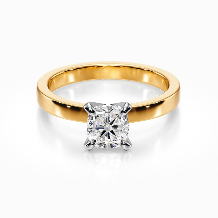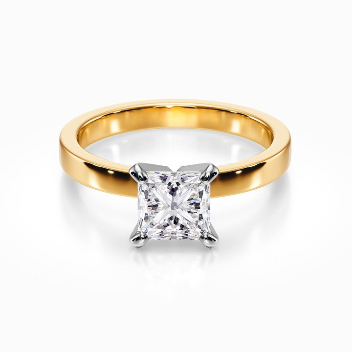 Classic 4-Prong Flat Solitaire 18K Solid Gold Ring