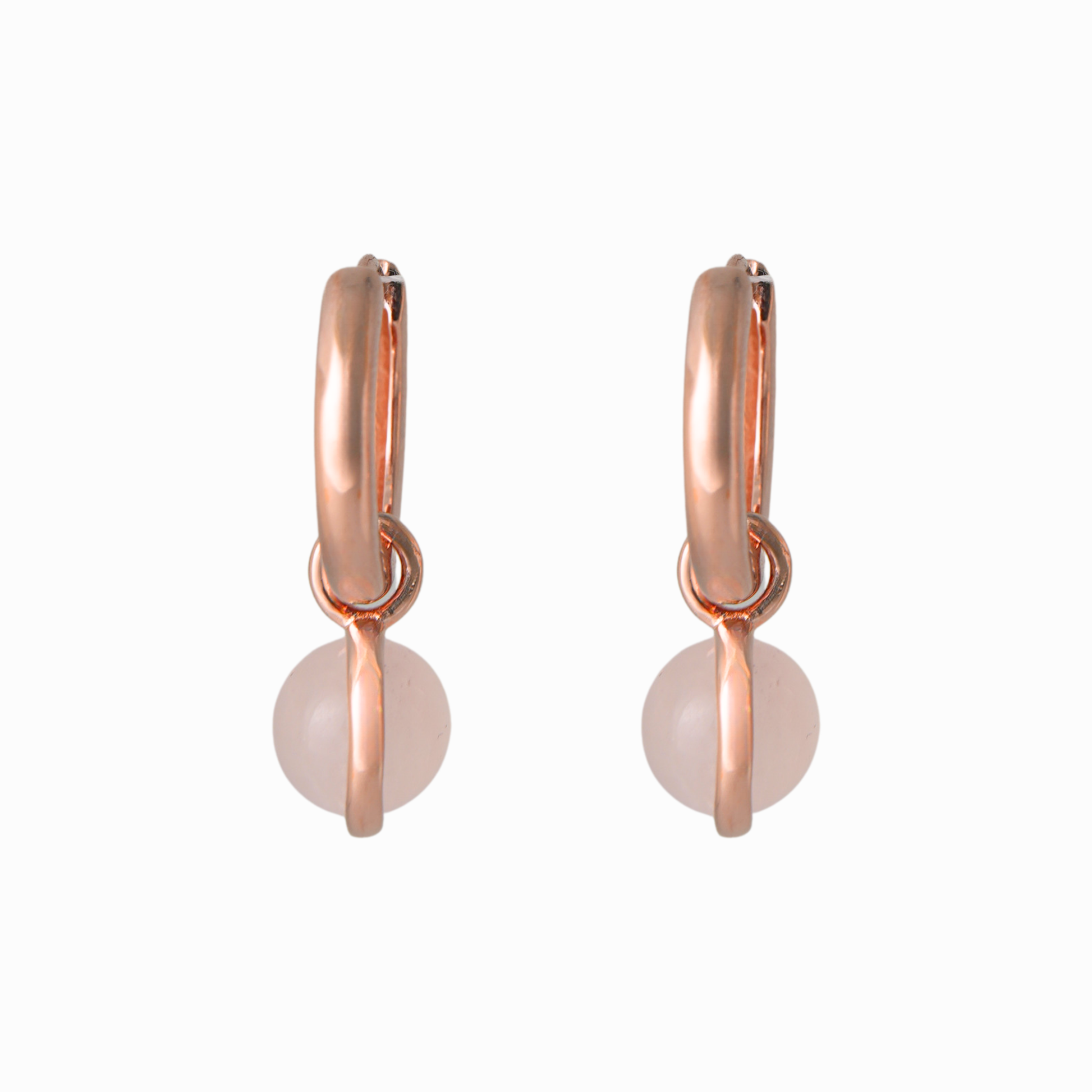 A soft pink Rose quartz/ sea‑blue Amazonite disc drifts gently beneath a rose‑gold hoop, casting a delicate blush glow. The warm, feminine tone and smooth cabochon cut lend an air of quiet romance. Perfect for everyday wear, these earrings bring a subtle sweetness to both casual and polished looks.