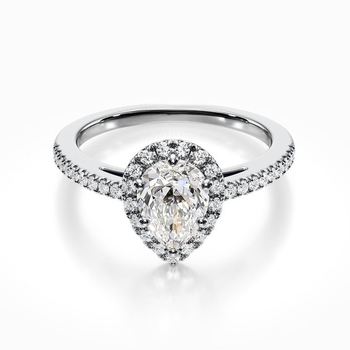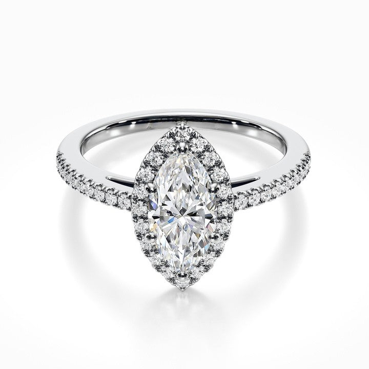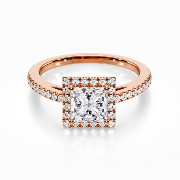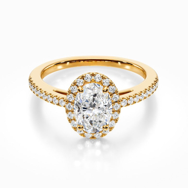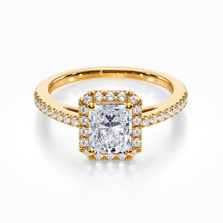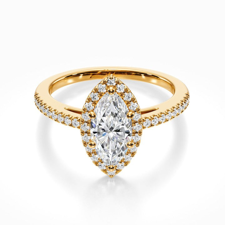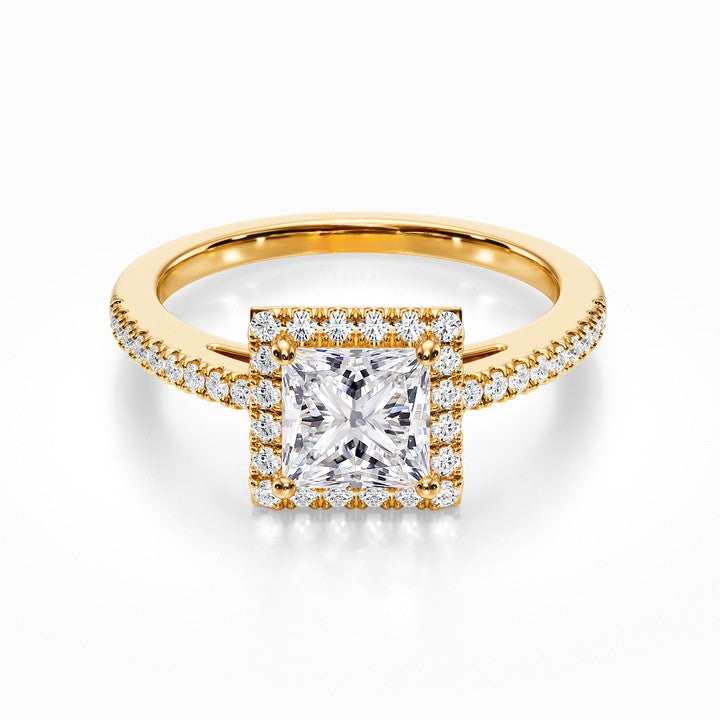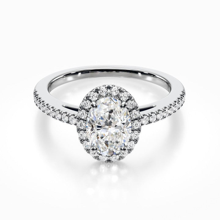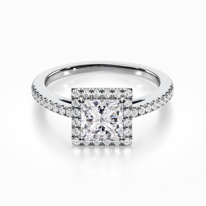 Meet the Floating Halo Pavé Engagement Ring, a luminous halo that appears to float around the center diamond, set with fine pavé for a bright, even frame. Slim pavé shoulders draw the eye toward a refined four-prong head, while the airy under-gallery lets light in from every angle for extra brilliance. Choose lab-grown (D/VS1) in 1.0ct or 1.5ct, or natural (F/VS1) diamond for a timeless center. Available in 18K White Gold, 18K Yellow Gold, or 18K Rose Gold to suit your style. Center Diamond is graded by GIA or IGI and delivered with its official report for proof of quality, authenticity, and exact specs.