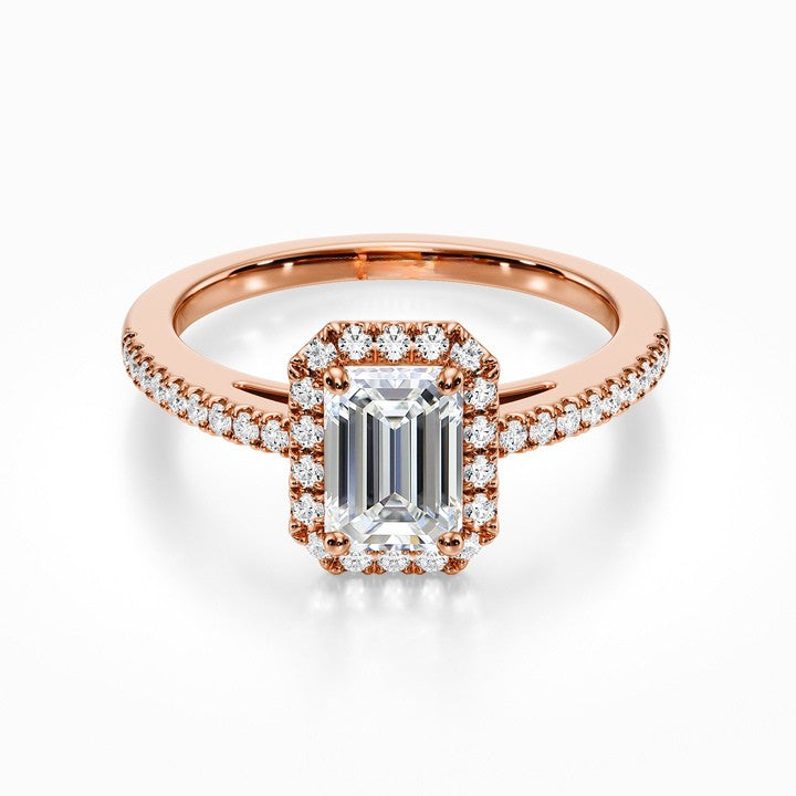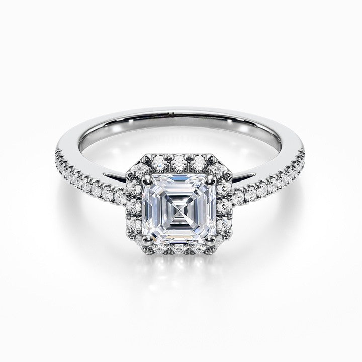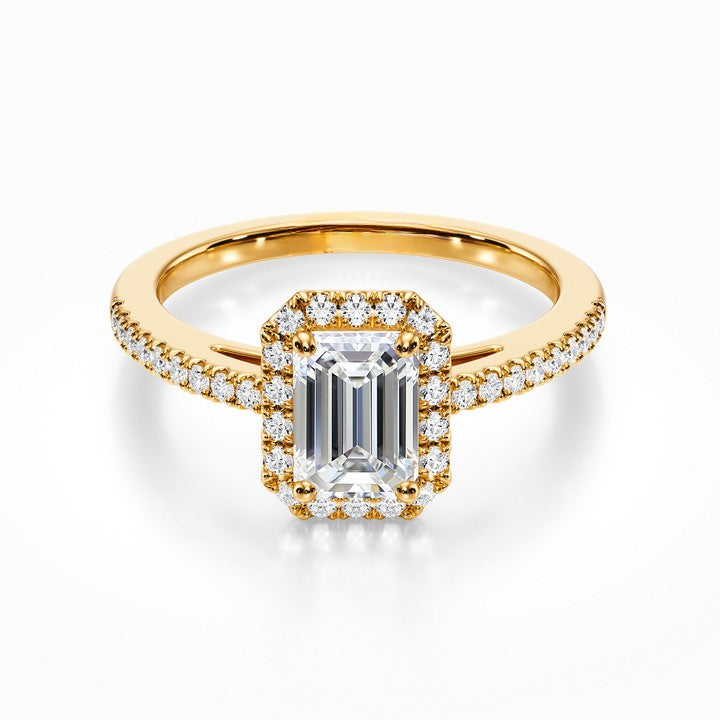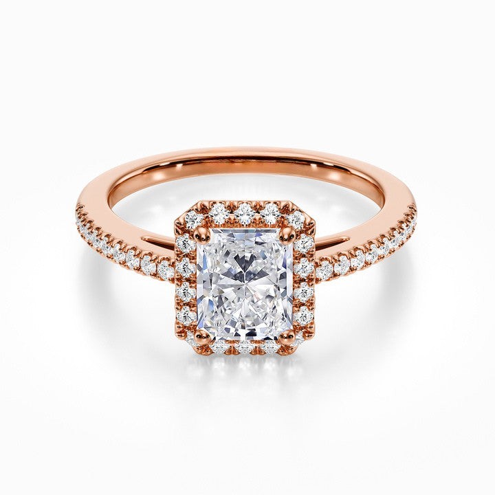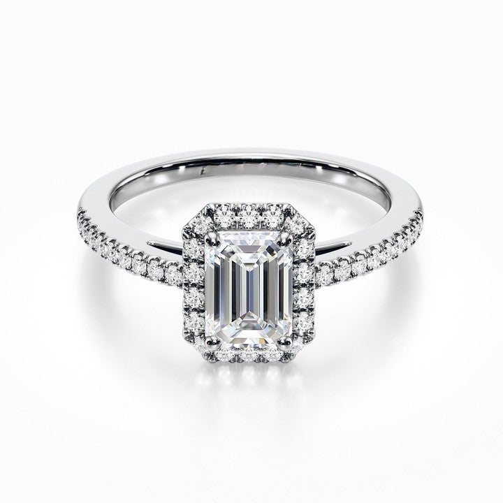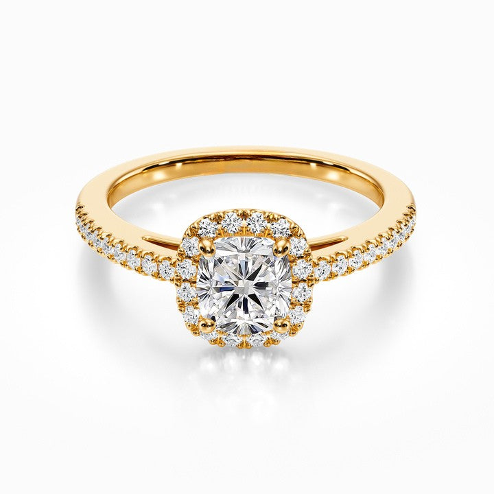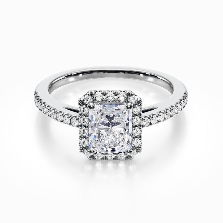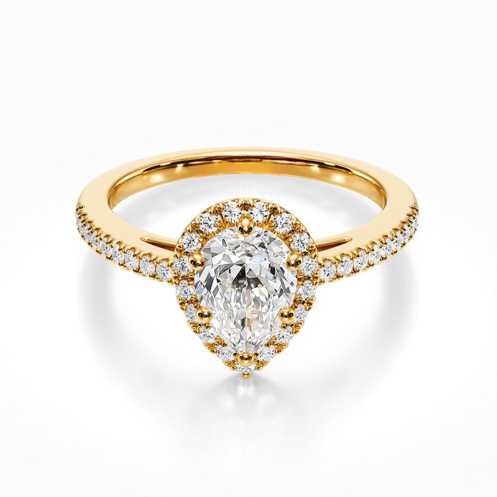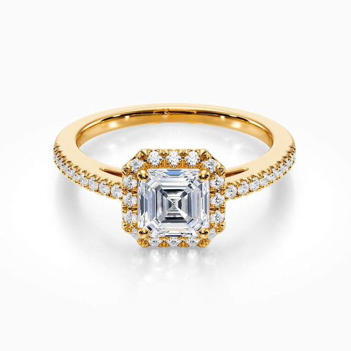 Meet the Floating Halo Pavé Engagement Ring, a luminous halo that appears to float around the center diamond, set with fine pavé for a bright, even frame. Slim pavé shoulders draw the eye toward a refined four-prong head, while the airy under-gallery lets light in from every angle for extra brilliance. Choose lab-grown (D/VS1) in 1.0ct or 1.5ct, or natural (F/VS1) diamond for a timeless center. Available in 18K White Gold, 18K Yellow Gold, or 18K Rose Gold to suit your style. Center Diamond is graded by GIA or IGI and delivered with its official report for proof of quality, authenticity, and exact specs.