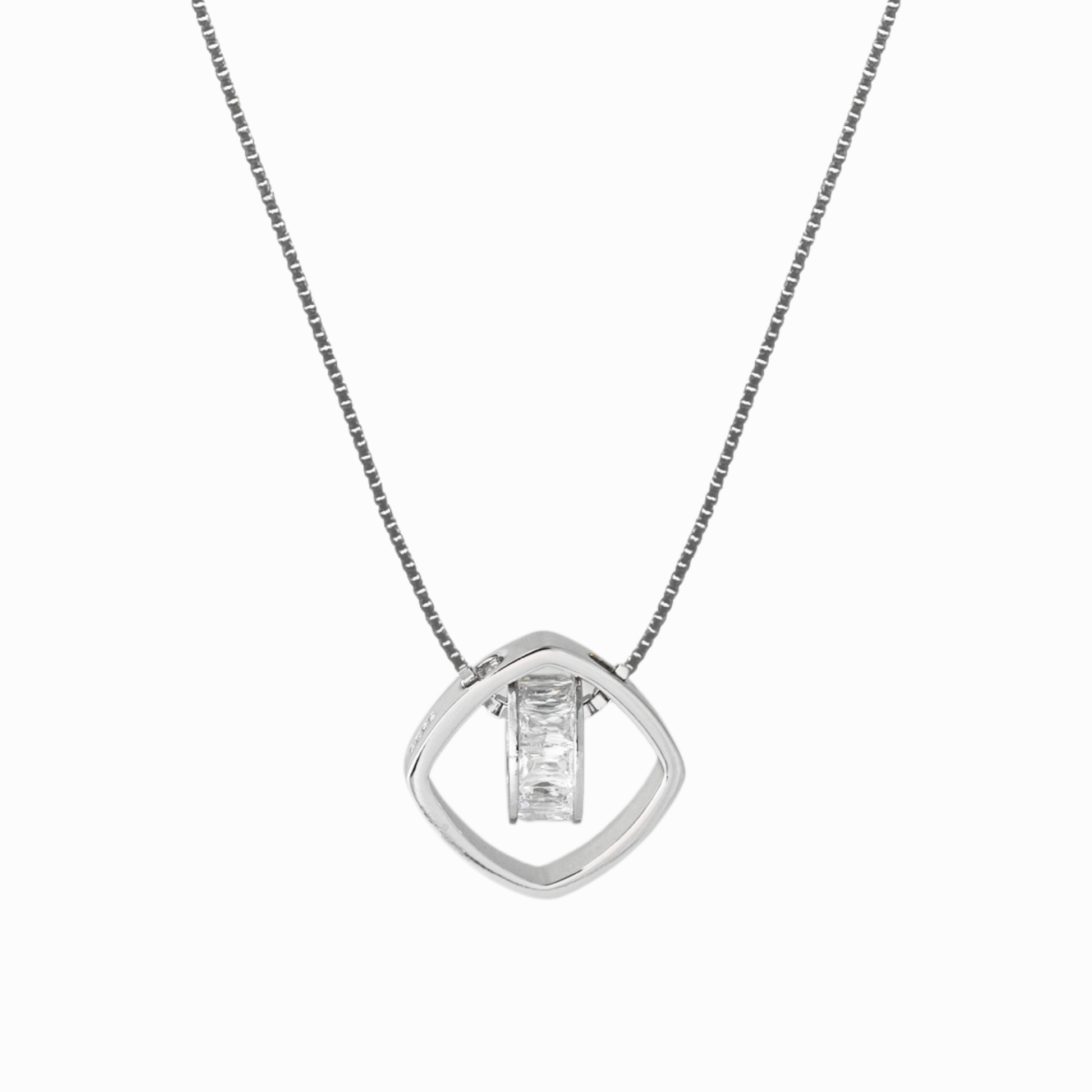 Discover the art of modern minimalism with our Prism Halo CZ Pendant Necklace. Expertly crafted in rhodium‑plated 925 sterling silver, this contemporary piece features a delicate 17‑inch box chain with a versatile 2‑inch extender for the perfect neckline fit. At its heart, a cluster of 0.20 carat CZ stones form a sleek channel‐set bar that appears to float within a geometric square frame, catching light from every angle. Effortlessly elevate both casual and evening ensembles. This statement‑making necklace is ideal for gifting or adding refined sparkle to your own jewelry collection.