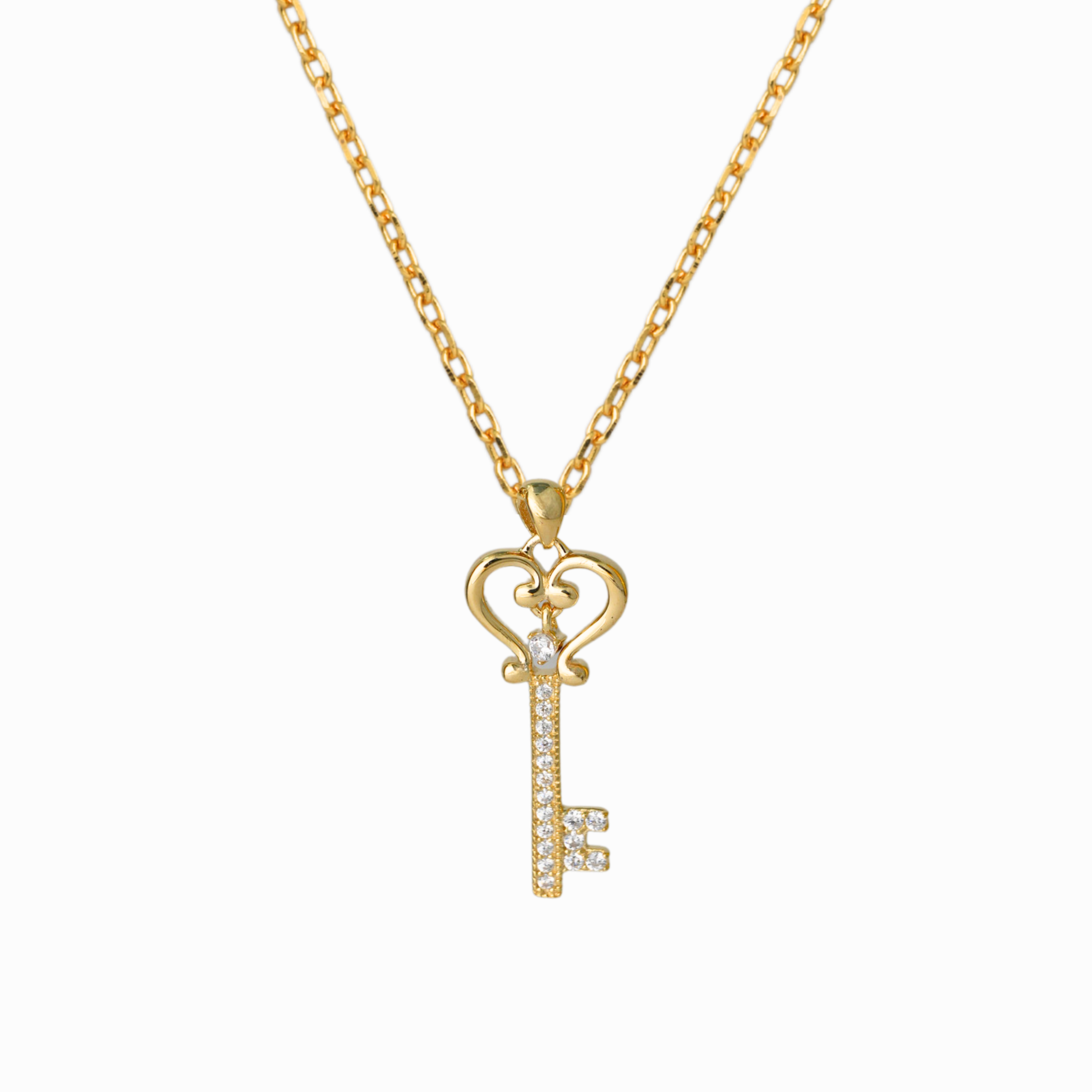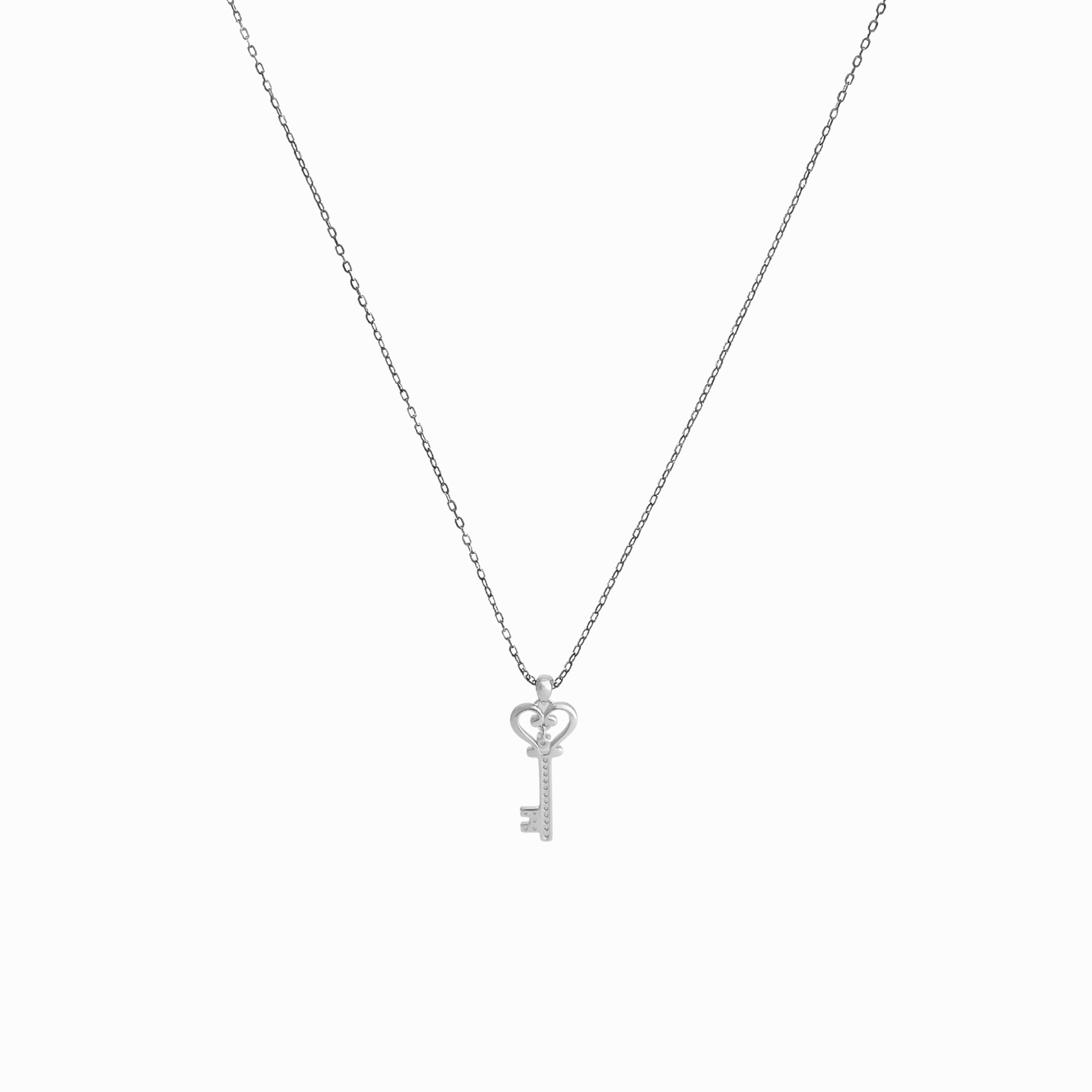 Unlock elegance with our Heart Key CZ Pendant Necklace. Crafted in rhodium‑plated 925 sterling silver, this delicate key‑shaped pendant sparkles with precision‑set CZ. Suspended from an adjustable 17 inch chain (15 inch + 2 inch extension), it offers versatile styling from collarbone to décolletage. Perfect for gifting or layering, this CZ key necklace adds a touch of modern sophistication to any outfit. Whether worn solo for minimalist flair or paired with your favorite charms for a curated look. Elevate everyday elegance and let the Heart Key Pendant Necklace be the statement piece that unlocks compliments.
