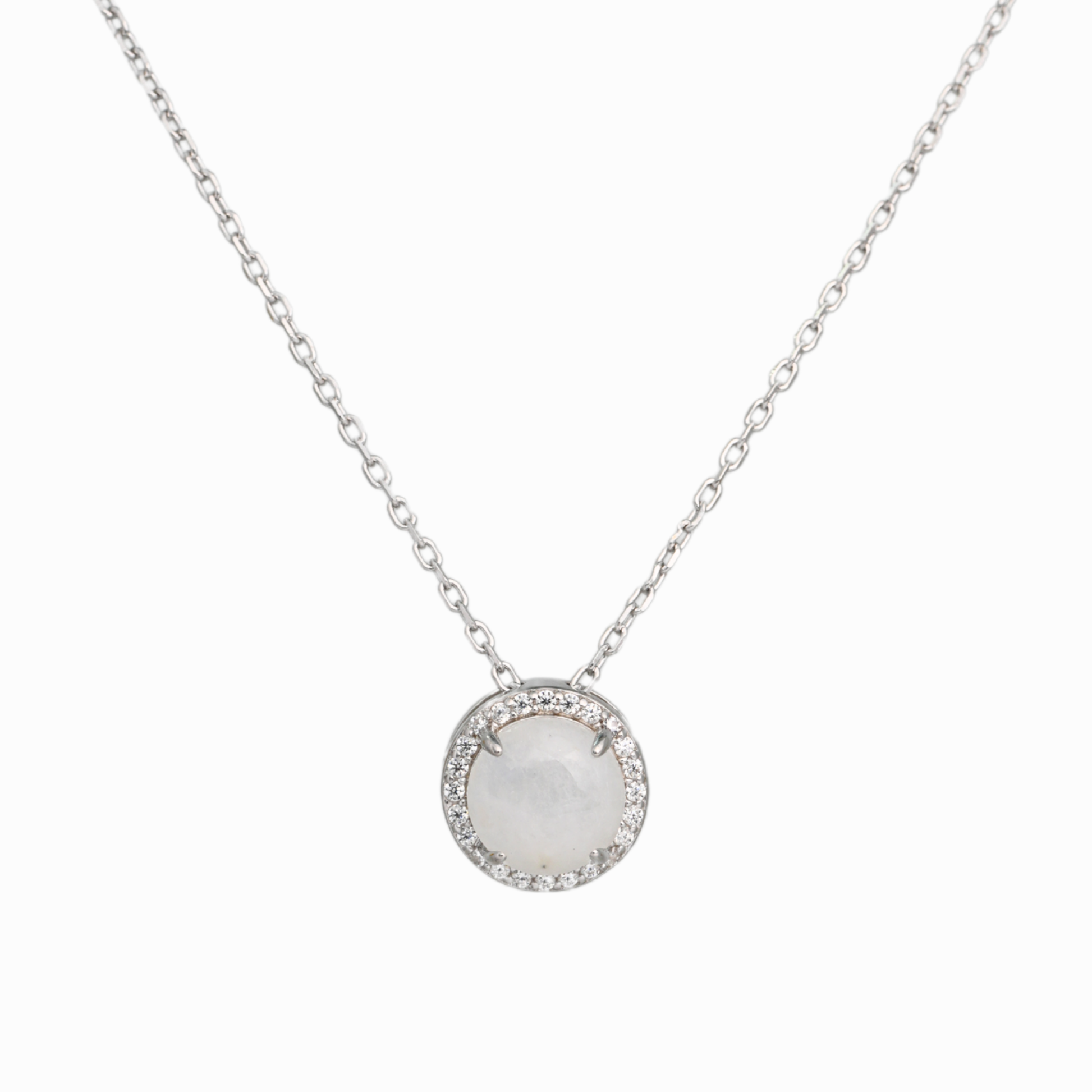 Illuminate your look with the Lunar Halo Moonstone Pendant Necklace, featuring a milky‑white moonstone cabochon framed by a brilliant halo of CZ. Expertly crafted in rhodium‑plated 925 sterling silver, this necklace offers both hypoallergenic comfort and enduring shine. The adjustable 17‑inch chain makes it perfect for layering or wearing alone as a refined statement piece. Whether you’re seeking a meaningful gift or adding a touch of celestial elegance to your own jewelry collection, the Lunar Halo captures the mystical glow of the moon in a timeless design. Ideal for everyday wear, special occasions, or as a thoughtful birthday or anniversary present.