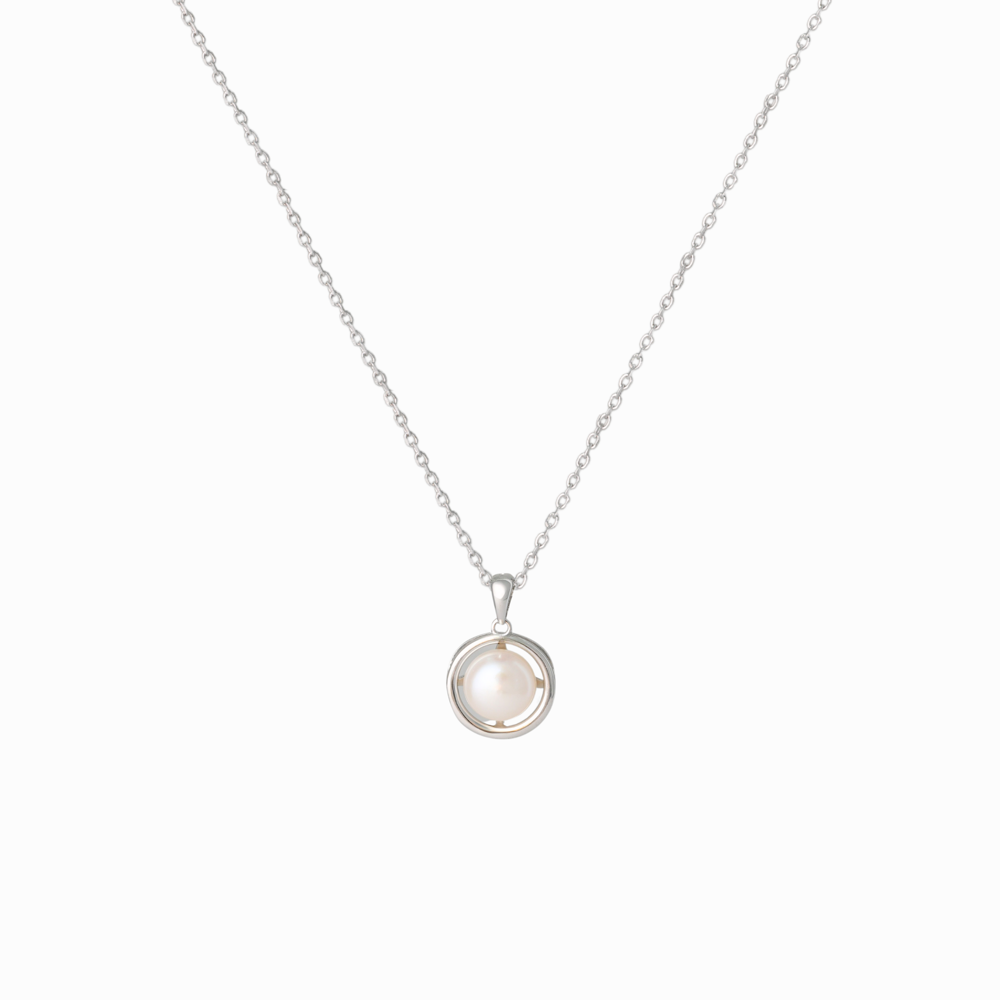 A lustrous freshwater pearl floats gracefully within an orbit‑inspired swirl of rhodium‑plated sterling silver. The seamless, flowing lines of the pendant capture light from every angle, while the pearl’s soft glow lends an air of timeless elegance. Suspended on a delicate adjustable chain, the Orbit Freshwater Pearl Pendant Necklace is the perfect blend of modern design and classic beauty, ideal for everyday wear or special occasions alike.