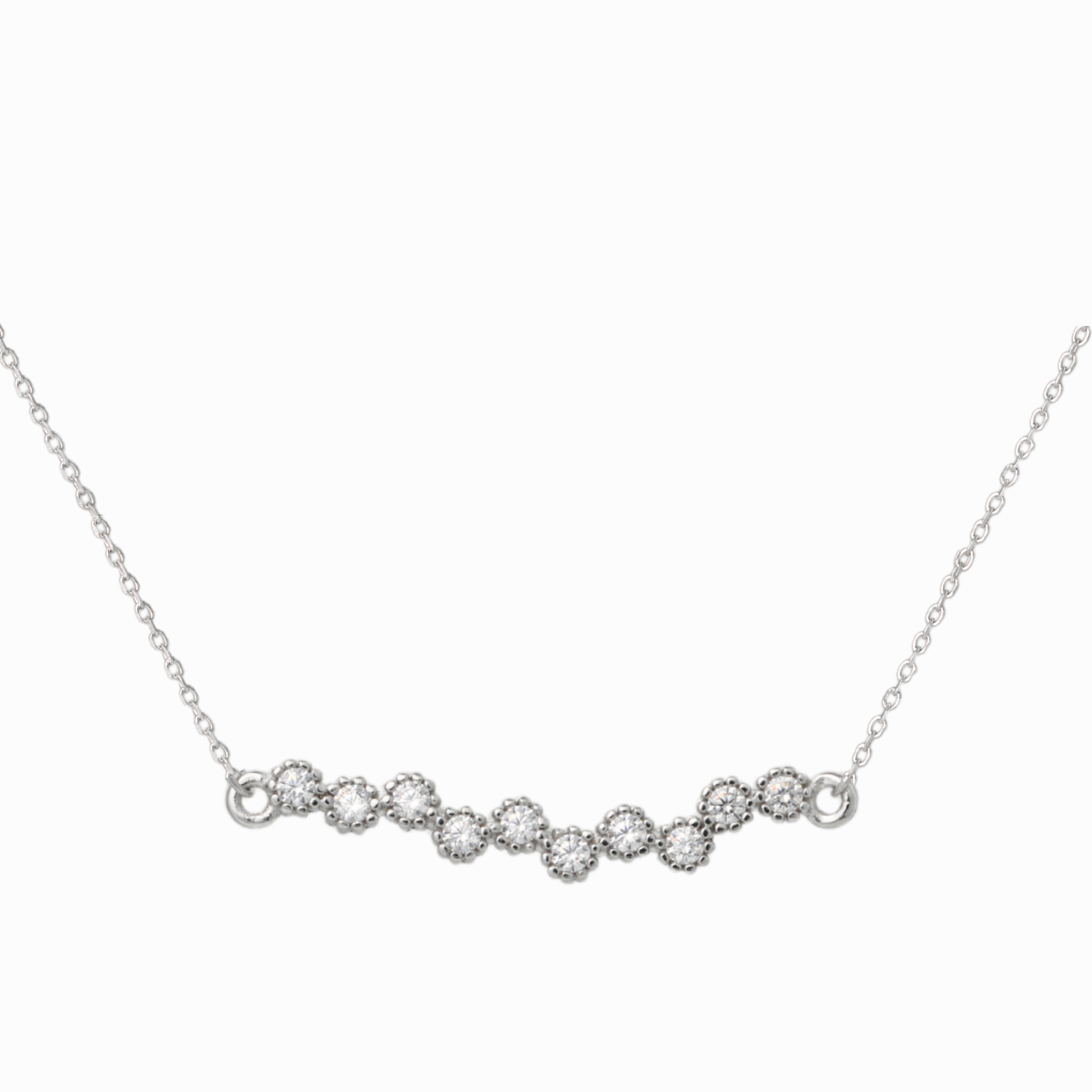 Make a subtle yet sophisticated statement with our Stellar Wave Necklace. This chic sterling silver piece features a delicate 16‑inch rhodium‑plated chain with a 1.5‑inch extender, ensuring a perfect fit for any neckline. At its heart is an artfully curved “wave” motif set with 0.40 ctw of CZ, each stone meticulously pavé‑set to catch the light from every angle.